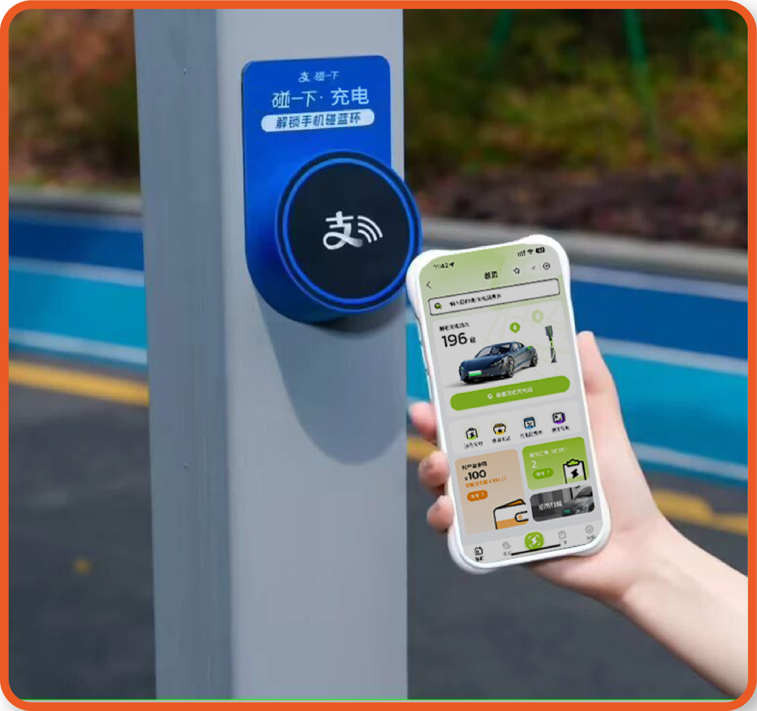 3. 找到支付宝的碰一碰小蓝环,只需轻轻靠近它,享受丝滑充电体验。